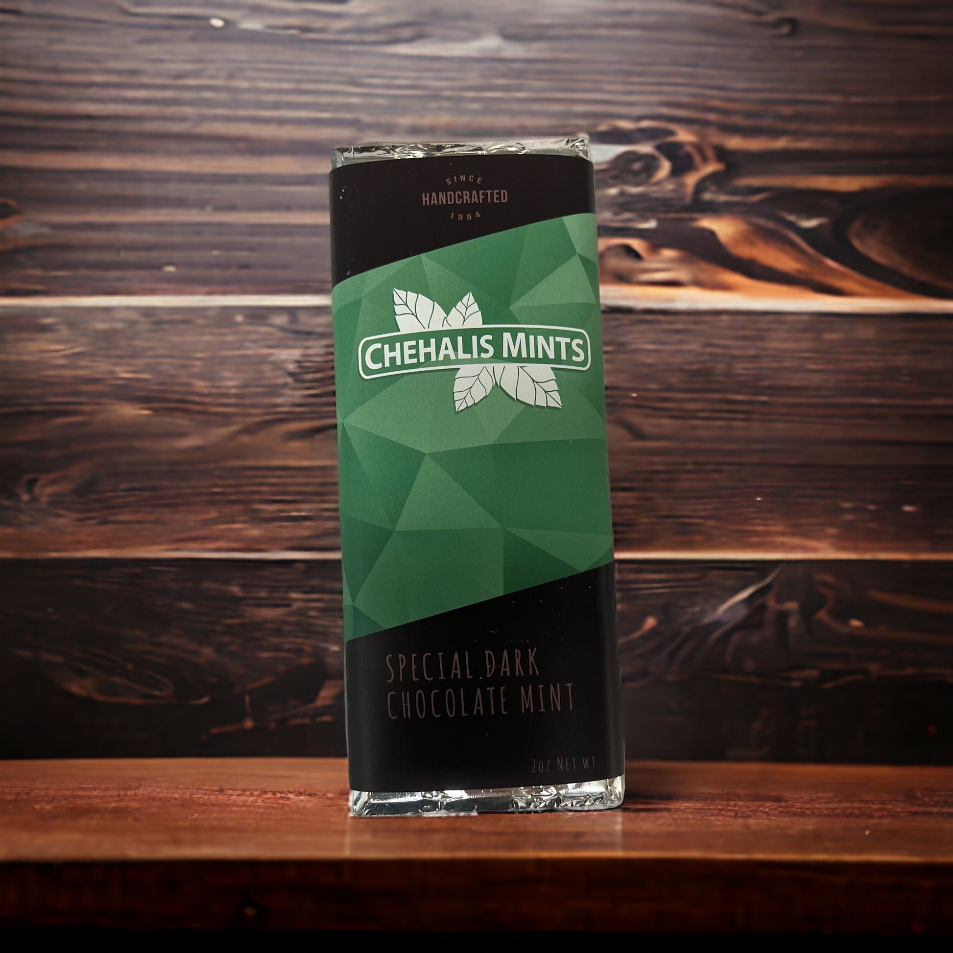 Special dark chocolate mint candy bar. Hand poured and wrapped to perfection.